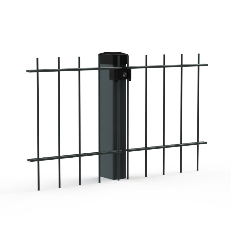 Das System "Pfosten mit Klemmhalter Kunststoff" ist dem 2D5 ähnlich, jedoch mit einer Kunststoffunterlage. Der Pfostentyp eignet sich für Doppelstabmatten.