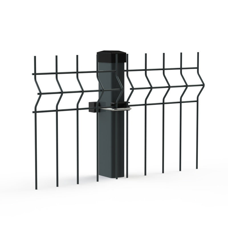 Das System "Pfosten mit Bügelhalterung" ist eine Halterung mit Profil und Kunststoffunterlagen, die an zwei Punkten verschraubt wird. Der Pfostentyp ist für Einstabmatten geeignet.